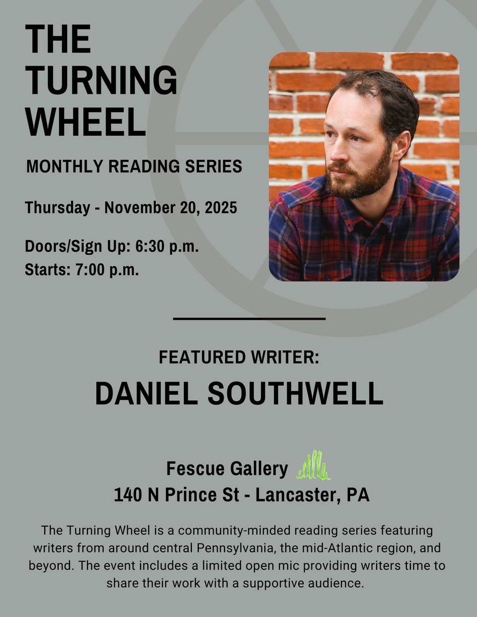 If you’re in the Lancaster area, I’m going to be reading selections of my novel-in-progress for the Turning Wheel on November 20th.