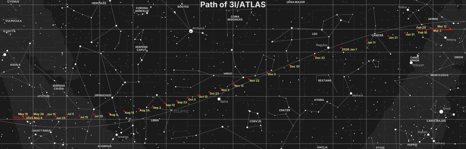 Thunkii is working on plots that show the paths of various comets and posting them on Wikipedia. Hereโs one of 3I/ATLAS: