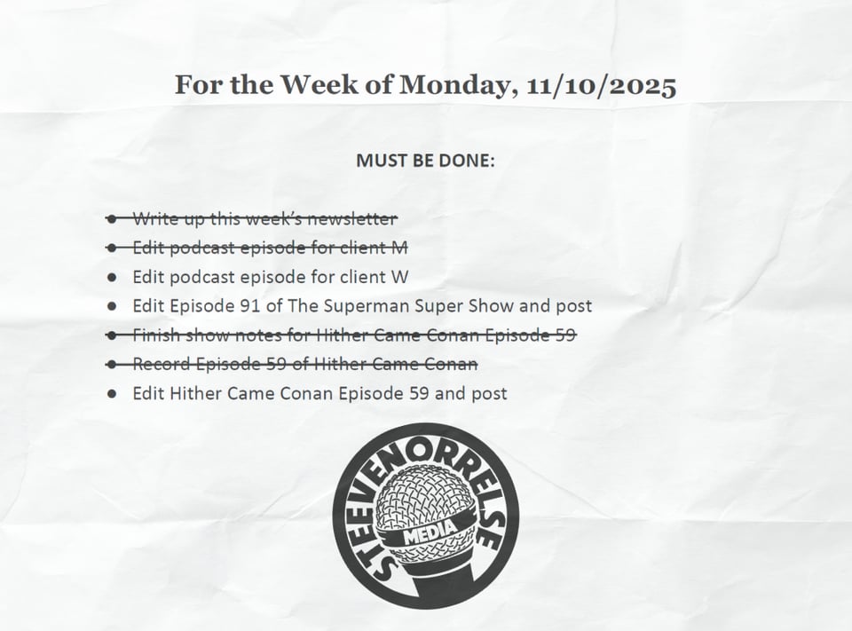 And yet, as you can see, I have not only finished the show notes for the next episode of Hither Came Conan, I recorded the episode as well. So that’s good news!