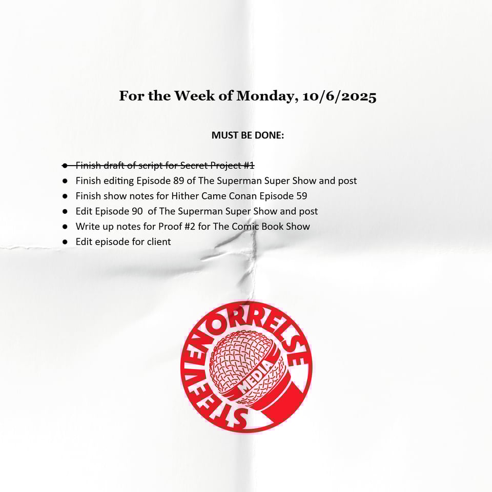 On a brighter note — I expect to be back in the studio soon. I’ll be recording new episodes of The Superman Super Show and Hither Came Conan as soon as I can get all my ducks in a row and my mental health is doing a bit better.