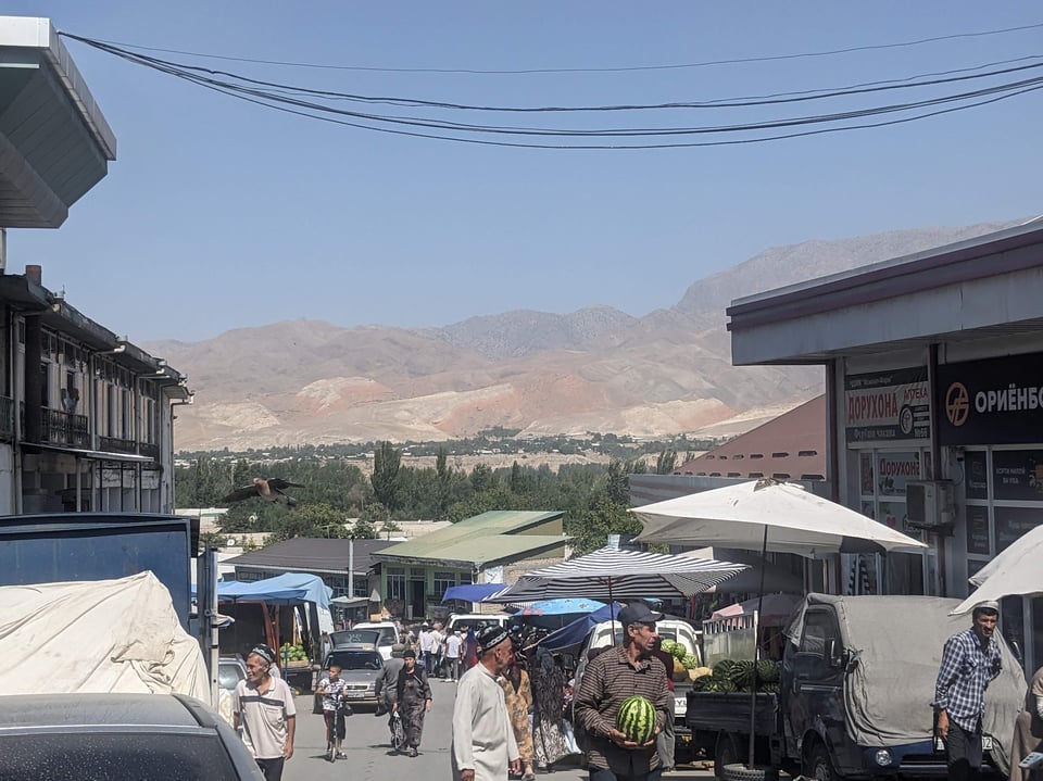 The border is incredibly relaxed at 7am and I breeze through. I acquire some Tajik somonis, and it’s a bit of a shock to deal with currency that doesn’t have three or four extra 0’s on the end of everything. 10 somonis is about $1.50, got it. One of the weirdest things is later instead of receiving a 1 somoni coin in some change, I get given a stack of five 0.2 somoni coins, sticky-taped together, apparently quite common.
