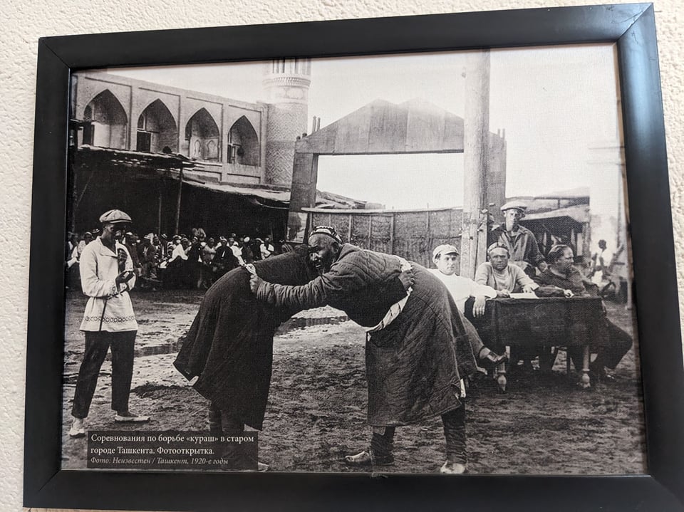 We go out for dinner, joined by a lovely couple from Brazil, a German motorbike-tourist who becomes known as “Mr Polite”, and a lovely Australian polyglot in his 70s. We’re off to sample the “national dish”, so my expectations are low. In Kazakhstan and Kyrgyzstan, that means beshbarmak, a kind of horsemeat minestrone which is honestly a bit forgettable. In Uzbekistan that means plov (aka pilaf), widely available across the stans: a rice dish with meat and a tiny bit of veg, and never as good on the plate as it looks in photos.
