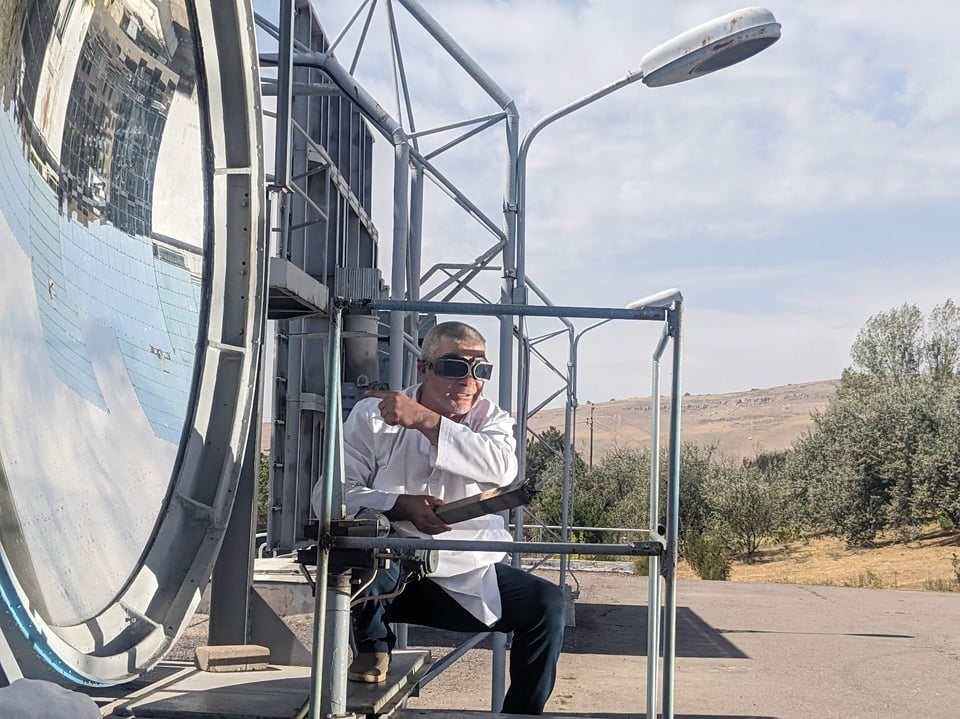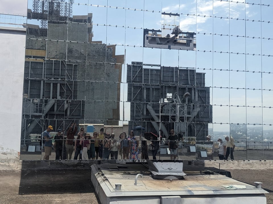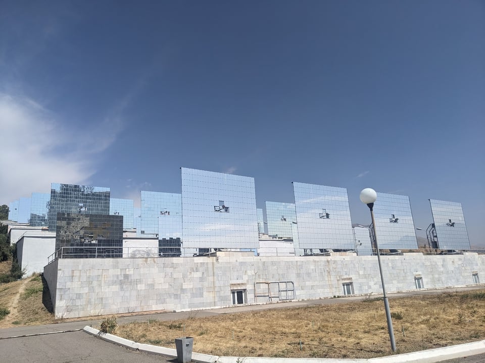 My sparse information on visiting it suggested it was open weekdays for visits. It’s over an hour by (very cheap) taxi but as I catch my first glimpse, I’m beyond excited. It’s so cool! The Soviets sure had their periods of dreary functional architecture, gigantic slabs of concrete built on the cheap, but this is their other extreme: it’s artistic, futuristic, a gleaming beacon of optimism and ambition perched on a hill overlooking the town of Parkent, surrounded by the tiny village they named “solar” in its honour. The only comparable complex in the world is the Odeillo solar furnace in France - perhaps ironically a drab “function over form” affair of very similar scale.