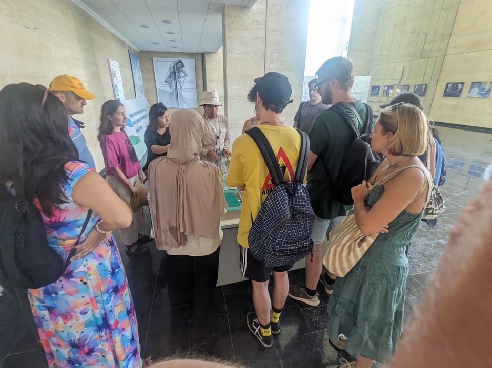 It’s a great plan, with just two drawbacks. First, it’s in Russian. Second, this is just a random group of tourists, but a class of international students who have come to Tashkent to learn Russian. Their teacher asks, “Do you speak Russian?” and is quick with her follow-up, “Why not?”