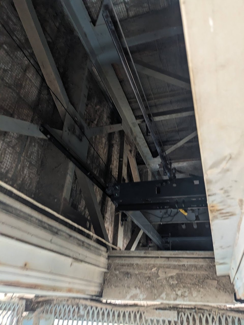 We climb the stairs to the first landing, and pass in front of the elevator. The doors are wide open, and there is nothing stopping you falling straight down the shaft. No signs, either. “That’s weird”, I say. We climb to the second landing, and it’s the same thing. That’s not good. Third landing, and my stomach is really turning. There are four more levels to go. I can’t do this any more.