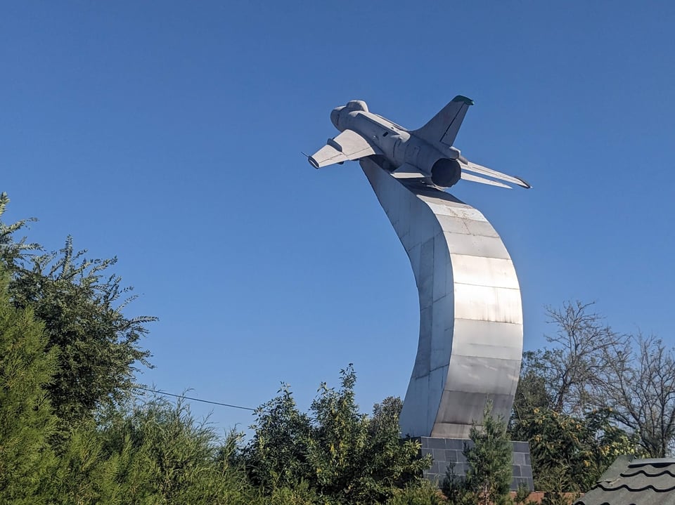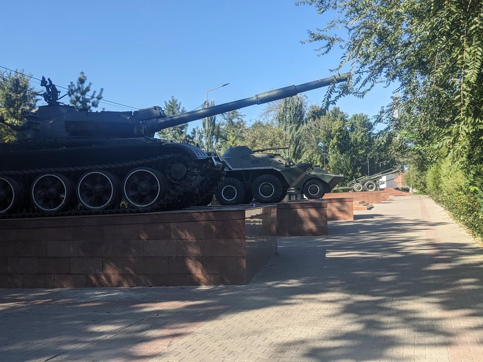 My aimless post-taxi wander in Shymkent fails to turn up much interesting. A decent bazaar. Some pleasant streets with nice restaurants. A park with a collection of army tanks, and this trip’s fourth fighter jet mounted on a pole - a MiG 15 perhaps.