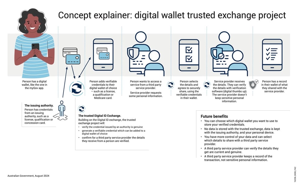 Perhaps this means that Finance will provide the overall policy-making and accreditation work, while Services Australia provides the technical infrastructure for feeding the digital wallets and real-time verification. Meanwhile MyGovID will be just one kind of identity credential that can be used in the system. I guess?