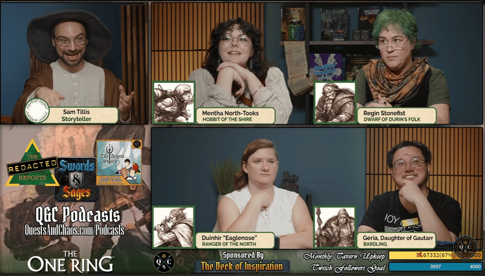 The first, pictured above, is a playthrough of the new starter set for The One Ring Roleplaying Game. Over the three-session adventure, we experienced much of the joy, wonder, and melancholy of Middle Earth (and made friends with a very special pony). I got to run the game in the extremely cool studio of Quests and Chaos, who stream all kinds of games on Twitch. You can find the first episode (with links to 2 & 3) on youtube here.