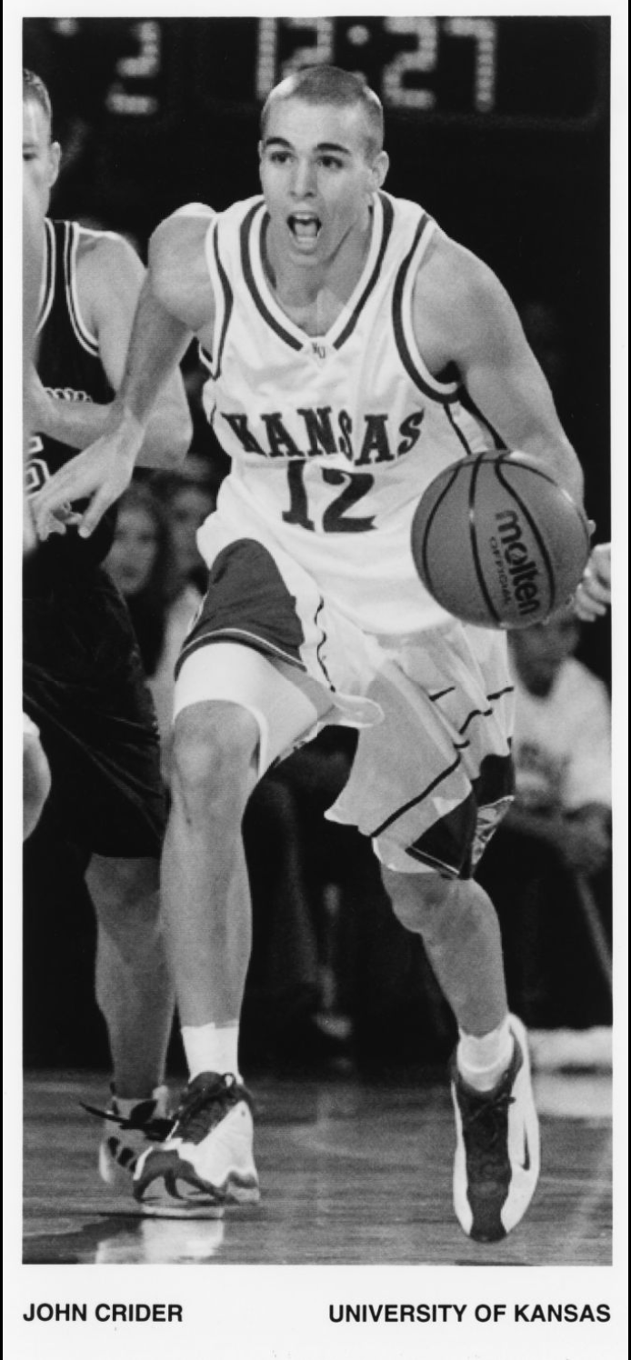 Pictured above is John Crider, a two-year walk-on for the Jayhawks in 98-99 and 99-00. Before enrolling at Kansas, Crider averaged 31 and 11 at Horton High School, absolutely dominating the hoopers of Northeast Kansas.He even once scored 52 in a game ā anyone familiar with Kansas State basketball, and its lack of a shot clock, could tell you that scoring 52 in a high school game is basically like scoring 270.