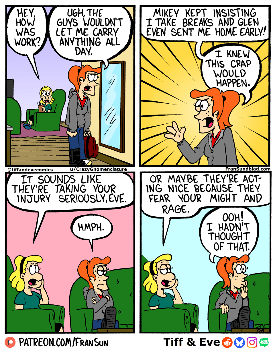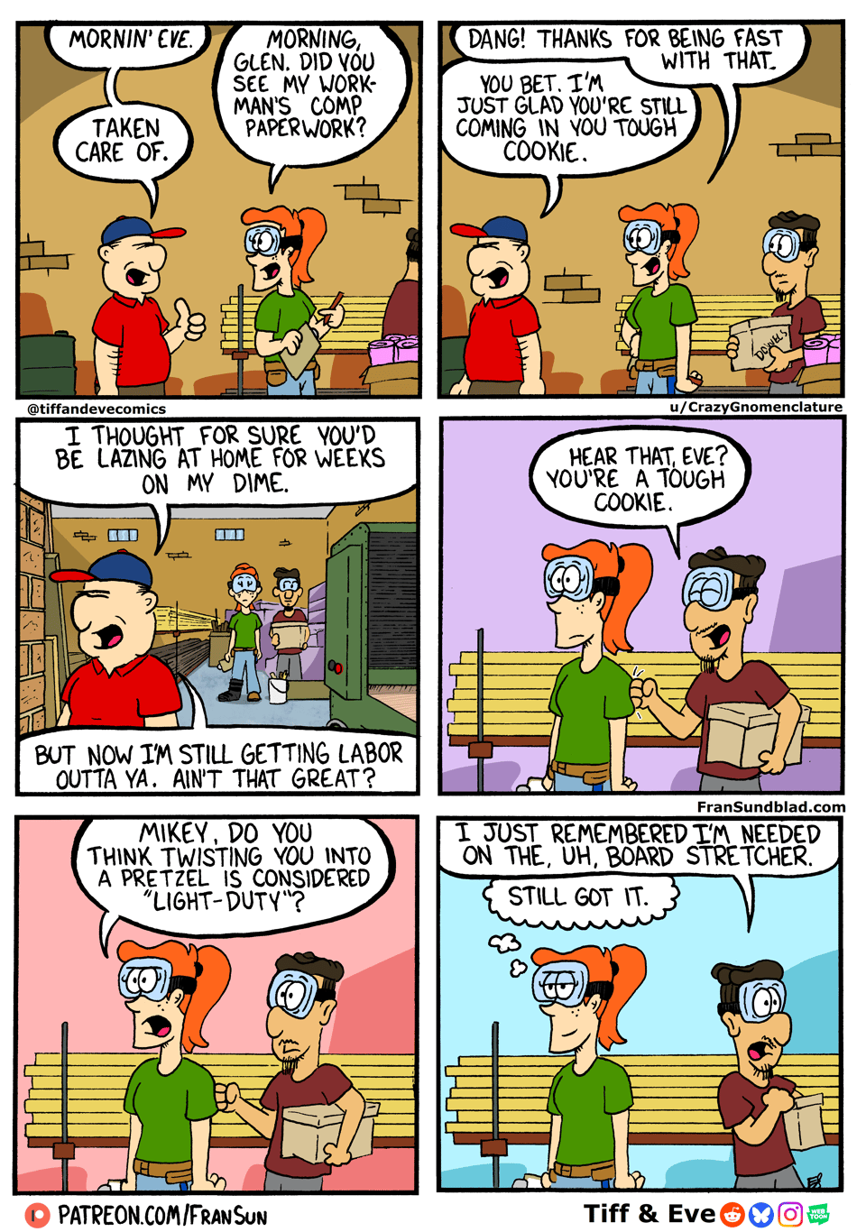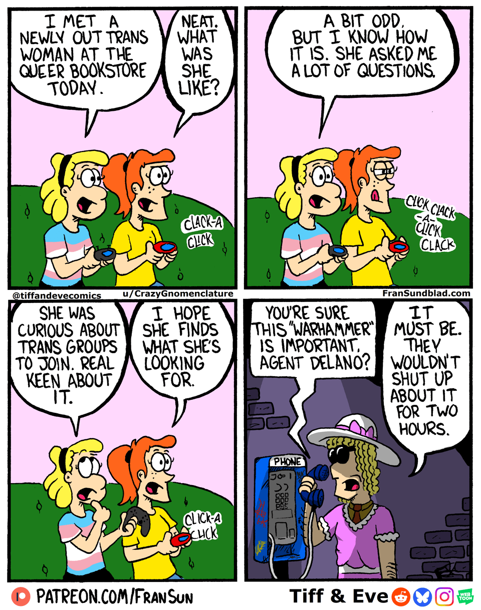 Note: Last issue we were missing a fan favorite comic strip. The editor has been given his final warning. But at least it means that this week you will enjoy a double helping of ‘Tiff & Eve’.