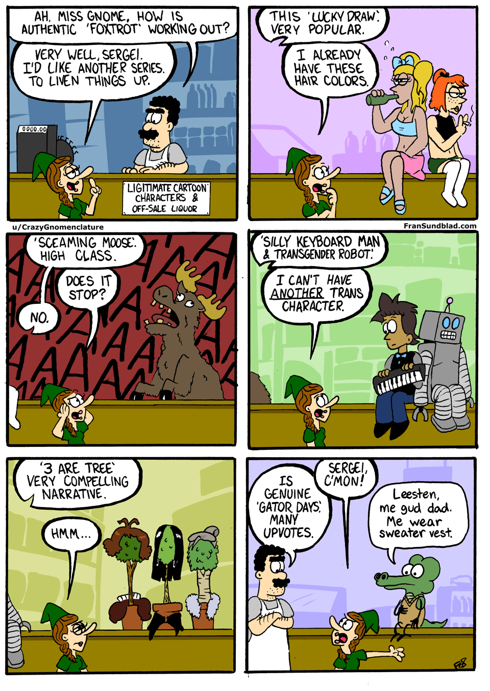 BUT, the issue before that? Well, we didn’t know it because the thingy was broken but ‘M Snail Art’ actually tied for first with ‘Tiff & Eve’ — a Sunday Comix first.