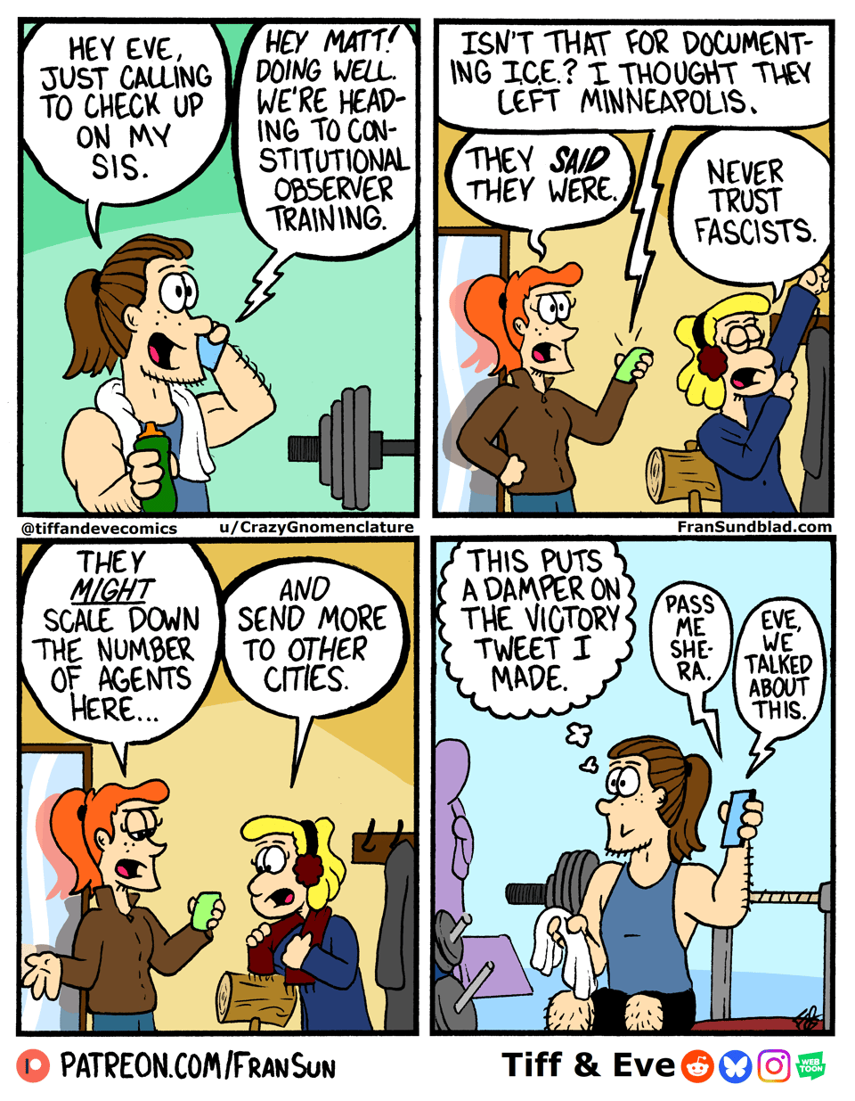 Congrats once again to ‘Tiff & Eve’ for winning last issue’s favorite comic poll. Our survey thingy is working again Fran killed it, again!