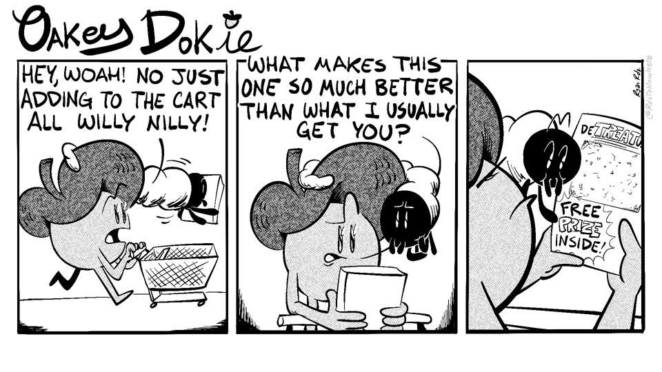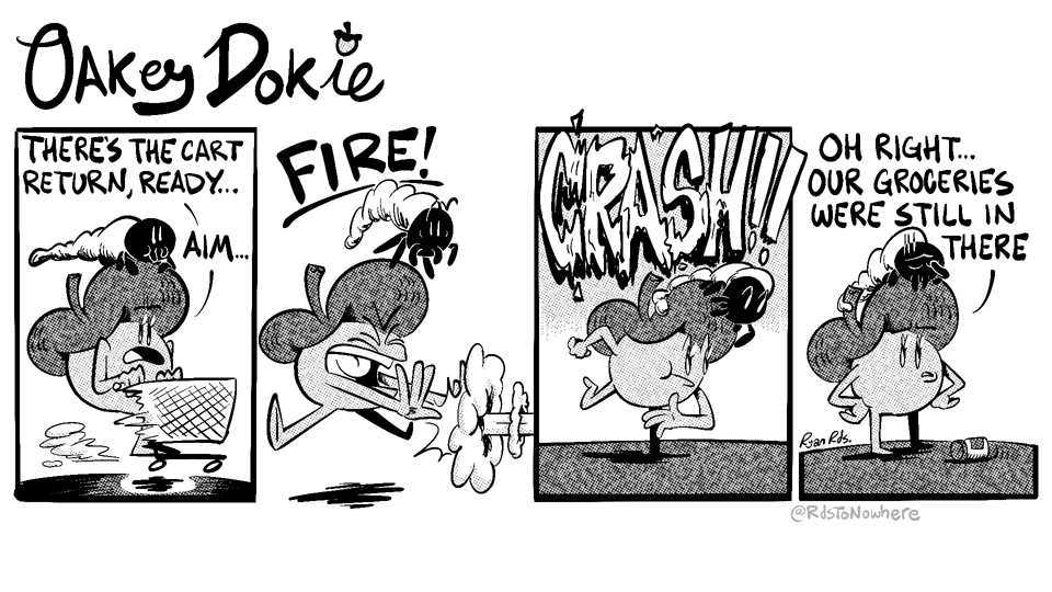 Are you salivating? I’m salivating. Ryan Rds., creator of ‘Oakey Dokey and Rds. to Nowhere’ drew some real tasty-looking nuts for this issue’s cover.