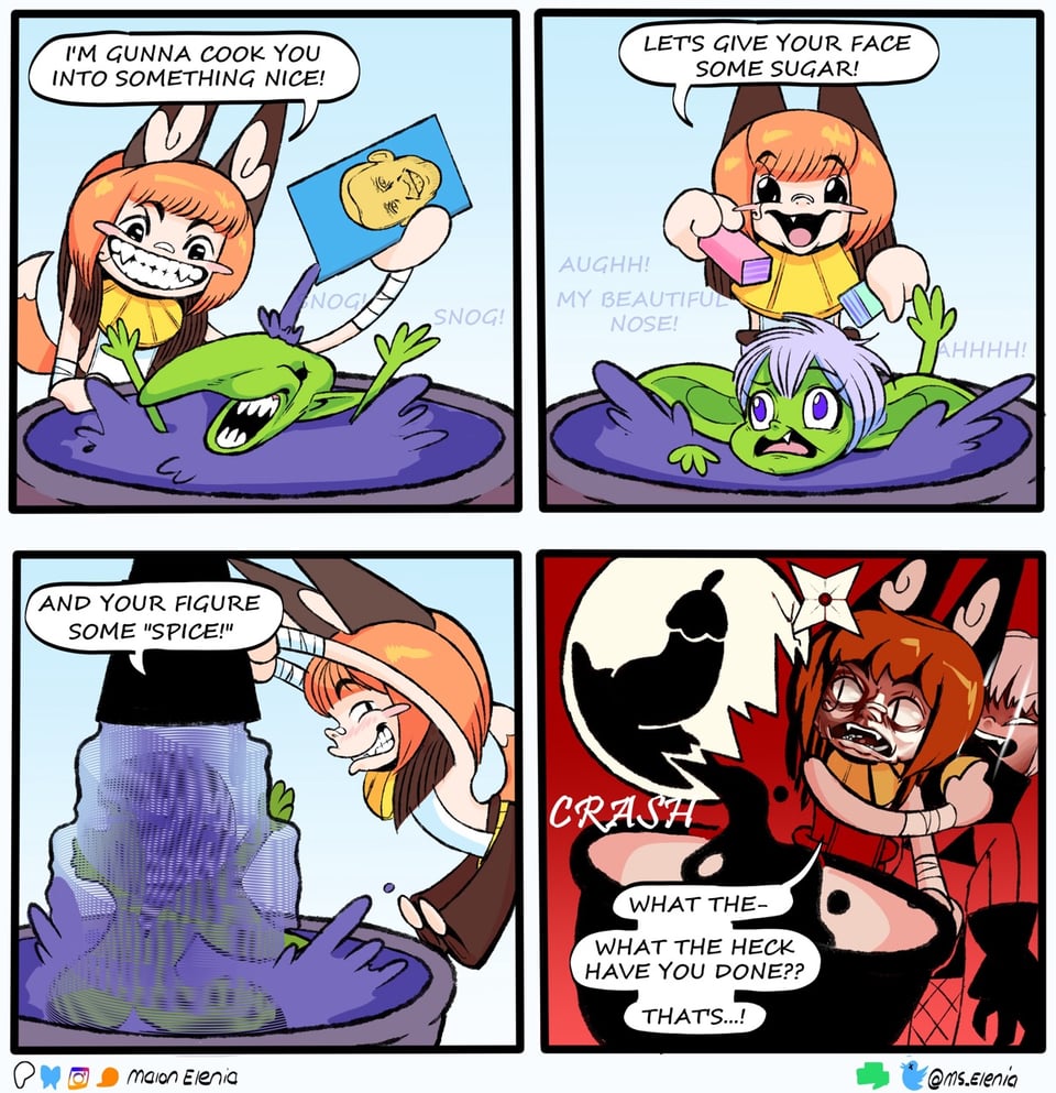 My workflow is a bit of a mess at the moment as I try to balance work, family time, sleep and my comic. I usually draw all my line work, characters and storyboards on my lunch break at work. Just with my pen and paper. Then when I get home, I have a small window to work on the colours and compositions of the pages before family time. The biggest challenge for me right now is when I get home from work my hands are tired. As I am a baker, I use my hands and arms at work. When I try to draw with tired weak hands my lines are wobbly inconsistent and uneven. I try to wake up early on the weekends to get some drawing done when I am well rested. I only sacrifice my sleep time for my comic I don't want to sacrifice any family time.