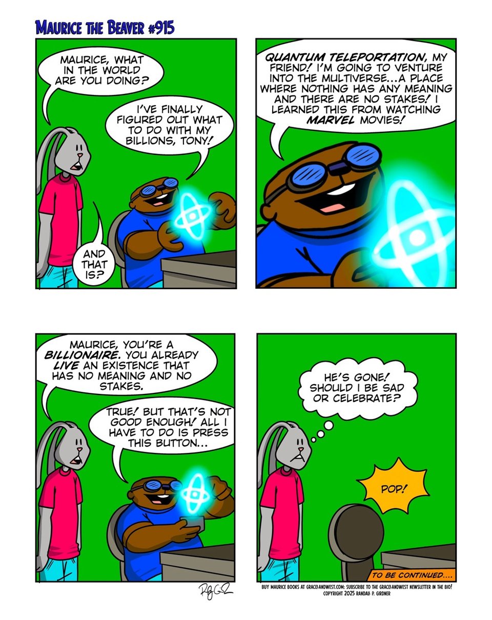 Our first Sunday Comix Super Special will feature Maurice the Beaver, of course, and more will follow after that, where you’ll get to catch up on comics that you might have missed from some of your favorite artists.