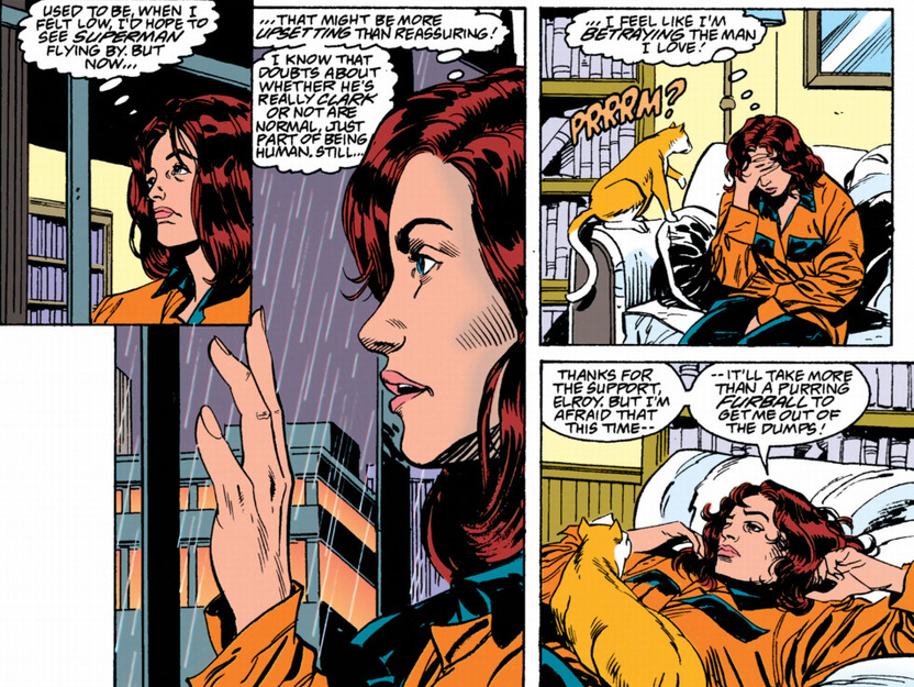 I do like the continuity of Lois’ cat Elroy only being happy when Clark isn’t in the picture.