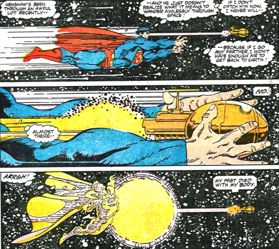 Anyway, after Superman has finished dealing with all the problems the communications blackout caused, he shows up at NASA and greets Hank by punching him so hard his entire robot body comes apart.