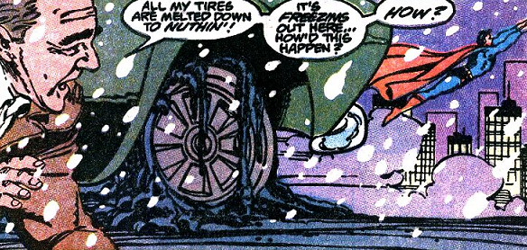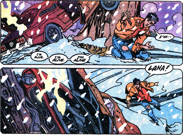 Clark escapes the inevitable accident unharmed, but Scott lands in a hospital bed and he’s been there since. Afterward, Clark gets a stern talk from his parents about great powers and great responsibility (plus great drinking and not-so-great driving). Back in the present of 1991, Clark tells Scott’s parents how that night shaped him as a person, and they’re moved by his story. The issue ends with Clark leaving the hospital and encountering some feisty drunks about to get into a car… when their wheels are mysteriously melted, as if someone had hit them with heat vision or something.