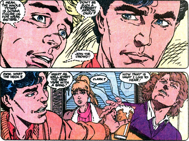Back during his high school years, Clark was one of the lame “farm kids” in Smallville High along with Pete Ross and Lana Lang, while Scott was one of the cool, cigarette-smoking, booze-drinking, car-having boys. After Clark made Scott look good during a football practice (by simply not kicking his ass with his latent alien powers), Scott invited Clark and his pals to a New Year’s party at his house. Pete is desperate to fit in and starts chugging beer right away, and Clark is eventually peer-pressured into joining in.