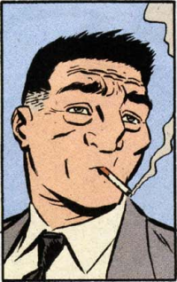 Before he was a mob enforcer, Blindspot was a failed insult comedian. His act petered out when the most creative insults he came up with was to call people “knucklehead”(page 15) “blockhead” (page 18) and also “chowderhead” (page 19) alternately.
