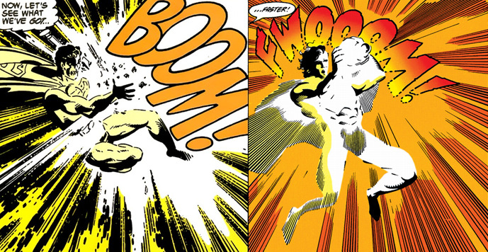 Superman’s gamely attempt to shake off the force field has some good moments, but the best image of the bunch is when Superman emerges from the blast furnace unharmed like Shadrach, Meshach, and Abednego.
