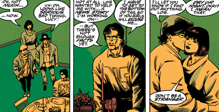 There's a scene where Lois is trying to have a romantic dinner with Clark to make him feel better about himself, but Lucy Lane invites herself in with one of the Riot Grrrls and they completely ruin the vibe. I think Lucy just wanted to show off that she's got friends other than Jimmy Olsen now. Can't say I blame her.