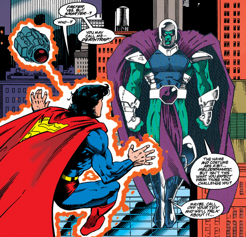 I’m glad they added the suffocating force field angle, because otherwise it would be dumb for Superman to play along with Deathtrap’s game.