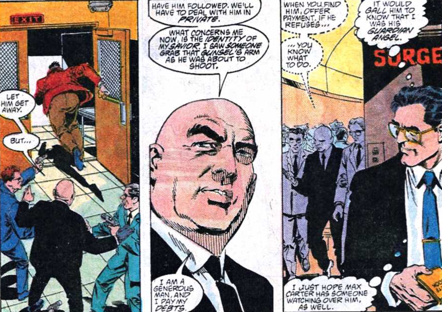 Luthor then orders his bodyguards to find his savior and give him money… or else. I’m not sure what they’re supposed to do. Beat him up until he accepts the money? Kill him, then throw a generous check at his corpse? None of these options sounds off-brand for Luthor.