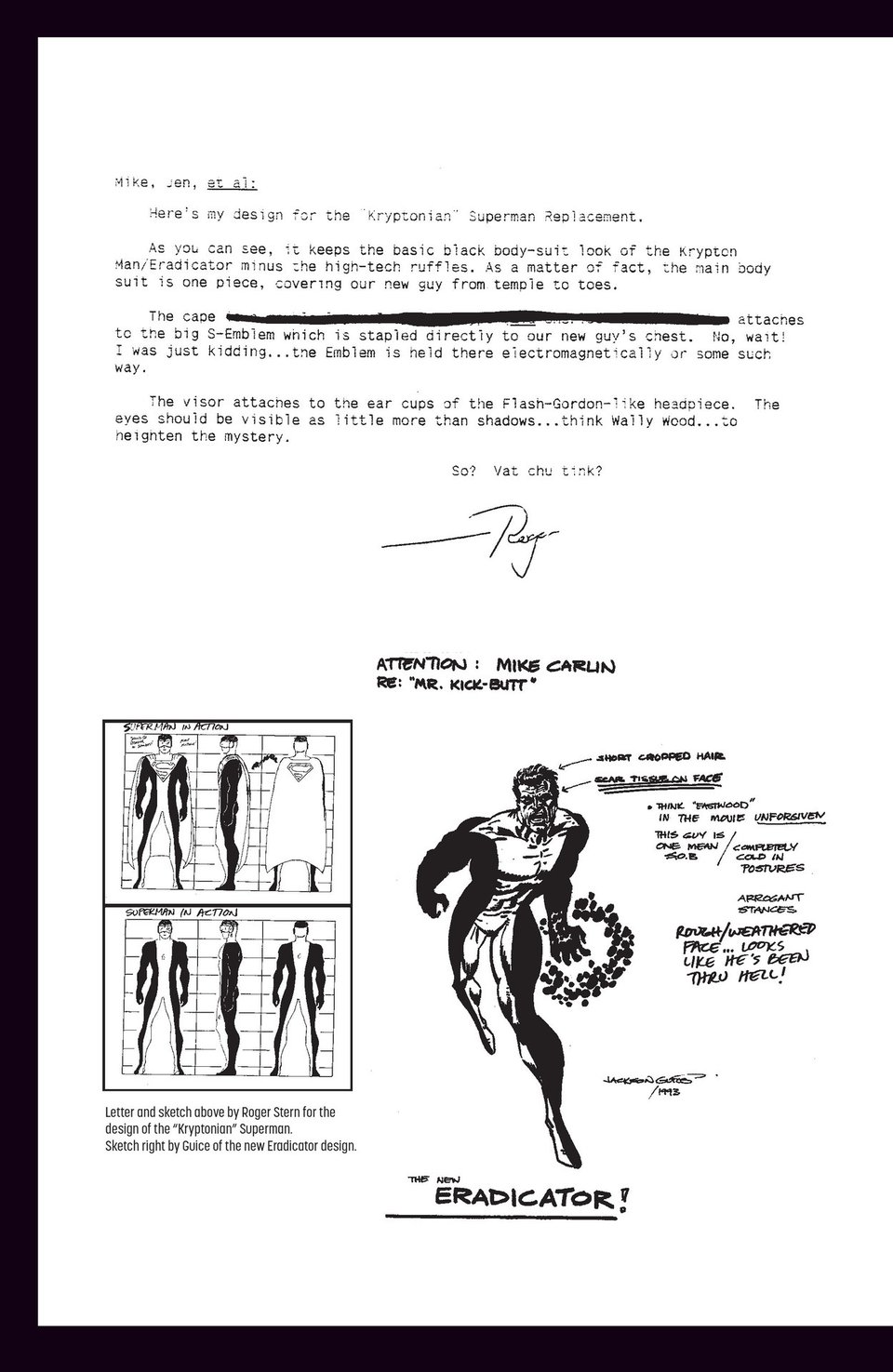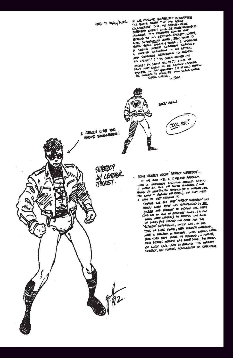 Original designs for the Superman pretenders, from the bonus materials on the recent Reign of the Supermen collection! For those following the story for the first time in this blog, be advised that the first sketch reveals the real identity of Visor Superman: yes, MR. KICK BUTT. (Pay no attention to the other name under the character, that's a typo.) The Superboy pages are also interesting to me, because you can see how much influence artist Tom Grummett had on the plot of these comics – he describes the scene where Superboy gets mad about his torn up jacket, and suggests that Cadmus could have started working on a Superman clone two years ago, during that otherwise kinda pointless Bloodhounds issue.