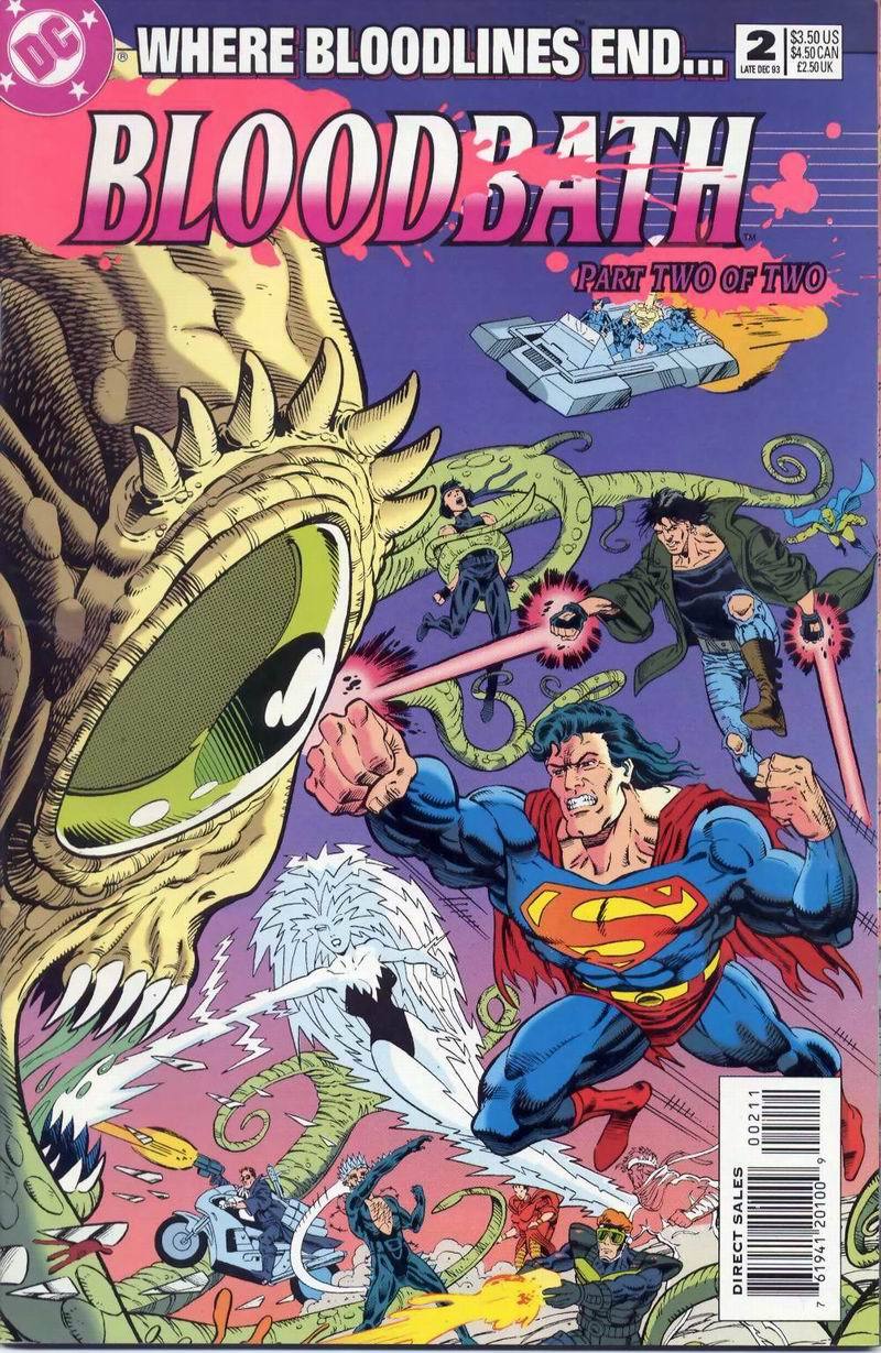 These unfortunately oversized issues finish up the terrible "Bloodlines" crossover that ran through most of DC's 1993 annuals, including the four Superman ones. I read this atrocity mostly to check out the scenes featuring Sasha Green, the personal trainer murdered by Lex Luthor Jr. in Superman #77 and then brought back to life as a superpowered being by the Xenomorph wannabes who are trying to invade Earth in this crossover. Turns out Sasha only shows up for three pages in the second issue, where she briefly teams up with Garth Ennis' Hitman (the only noteworthy character to come out of this crapfest). They're both carrying giant guns when they bump into each other because, again, 1993.
