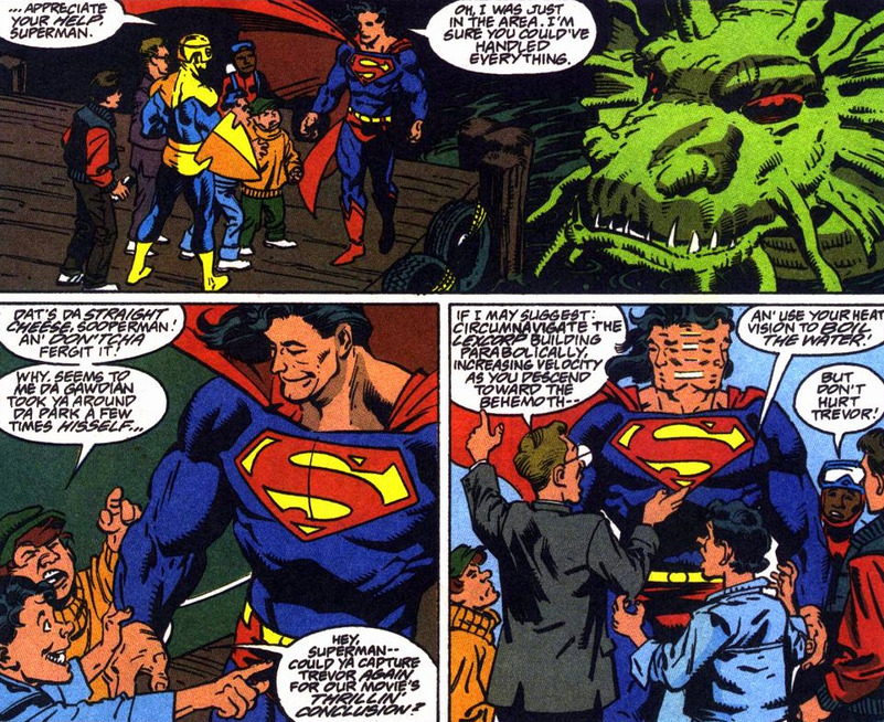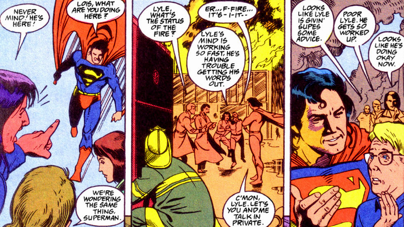 There's also a cameo by Terra-Man, who reads about those fires from the prison cell he's been in since 1991's Superman #52 and seems strangely displeased for a villain whose whole deal is blowing up facilities. I wonder if he hadn't appeared for so long because they were holding him for this mini or just because he's, you know, Terra-Man.