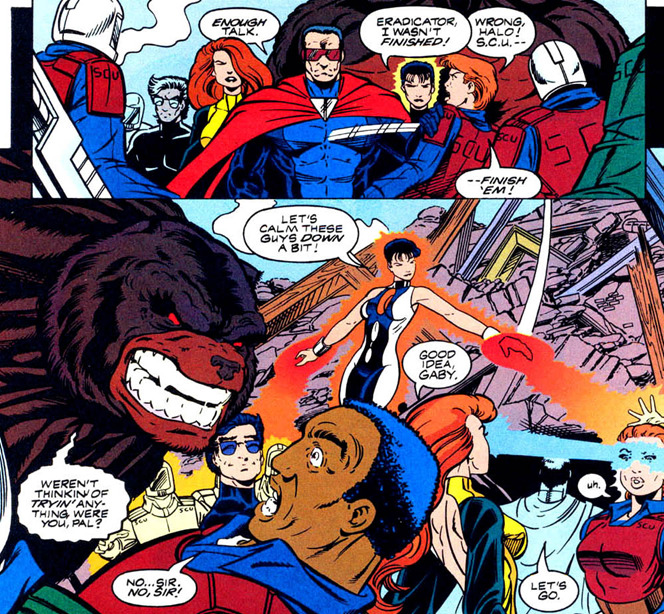 By the way, the S.C.U. members introduced here will continue to appear in the Super-Titles after the end of this mini -- especially Lyle, the science dork with anxiety issues.