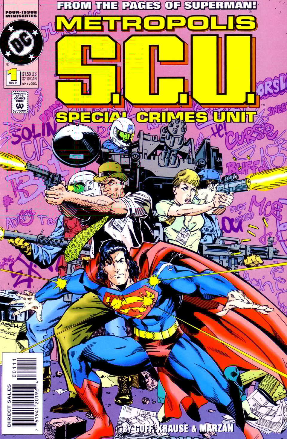 First issue of a 4-part miniseries about Mags and the S.C.U. gang. This mini is curious because it was first teased almost two years ago in the Superman Gallery special, which showed a sneak peek of the cover to #3, only it's marked as #2 and Superman has short hair in it. I suspect they might have lengthened Superman's hair in the interior pages too... except in this one panel where they were like "eh, no one will notice."