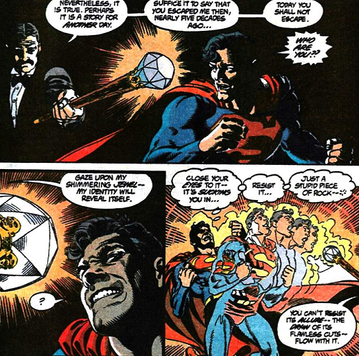 Superman gets trapped inside a diamond in his rematch against Mr. Z! What’s that? You can’t remember Superman’s first fight with Mr. Z? Well, neither can Superman, because it hasn’t happened yet.