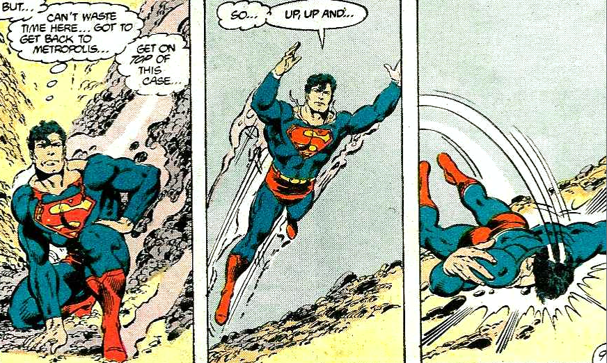 Superman takes the nuclear super-laughbot to space before it blows up, then lands in the Mojave desert. By the time he gets back to Metropolis, the Joker has kidnapped Jimmy Olsen, Lois Lane and Perry White and is making his getaway. However, Superman quickly catches him due to the Joker’s poor understanding of how his X-Ray vision works. As the Joker is being handed to the authorities, Superman asks him why he came to Metropolis and did all this, and the Joker replies: “Ooh, Superman… Why not?”