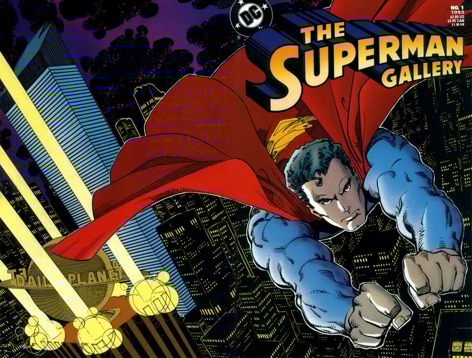 Walt Simonson's kick-ass cover to The Superman Gallery (1993), aka The Let's Throw Something Together So There's a Superman Comic This Month While We Prepare “Reign of the Supermen” Special (1993)! This is the only piece of original art in the issue: the rest is a selection of covers from over the years, a bunch of pinups reprinted from Superman #400, the odd promo poster, and a still from the ‘40s Superman cartoon. At least it's on nice paper.