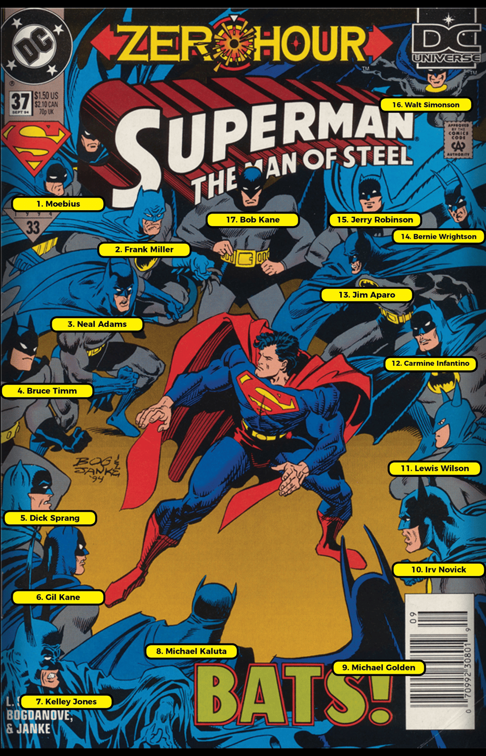 Don—Outstanding job identifying all the Batmen ( You even got Walt!!). The only one you didn’t get reflects my failure. What you guessed was Marshall Rogers was meant to be Bernie Wrightson. However I deeply regret NOT including Marshall. I really should have.