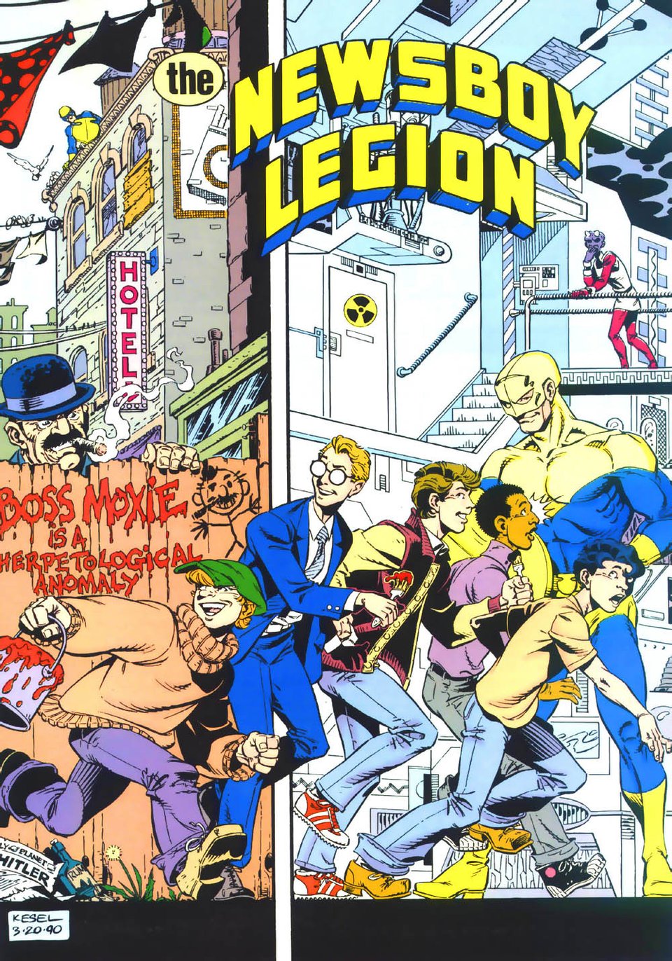 “Leftovers” edition! Featuring all the characters I couldn’t fit into the previous installments: Supergirl/Matrix, Terra-Man/Tobias Manning and the Newsboy Legion/a bunch of bratty kids. Fun fact (if you’re a continuity nerd like me): the illustration above is apparently the first appearance of Boss Movie, the original Newsboys’ nemesis in the 1940′s and a future Superman enemy. I always figured Moxie was a Jack Kirby creation that Superman writers brought back in the mid-90s, but according to the Internet, he made his debut in 1994 (so, three years after this page). Incidentally, does the ugly bastard remind you of anyone?