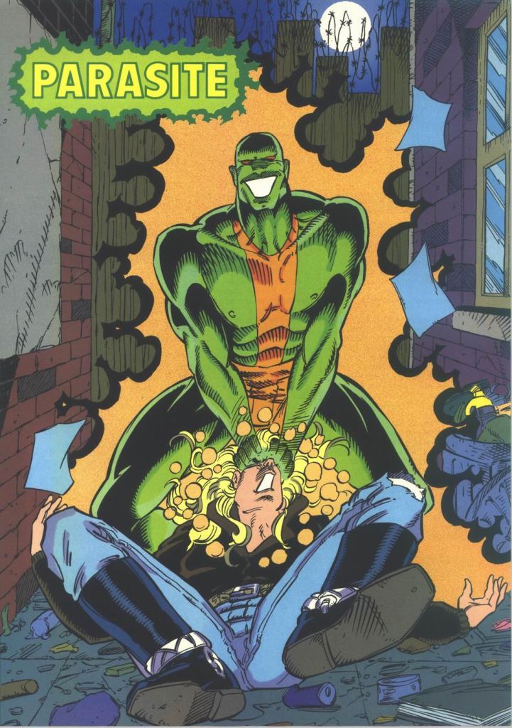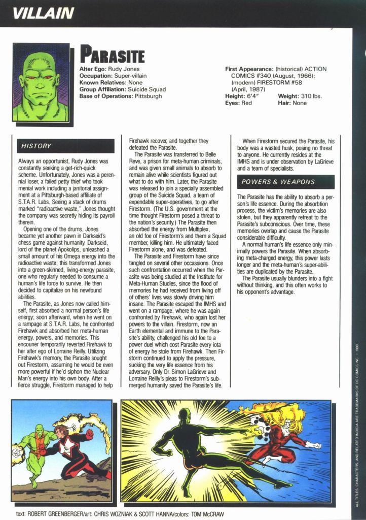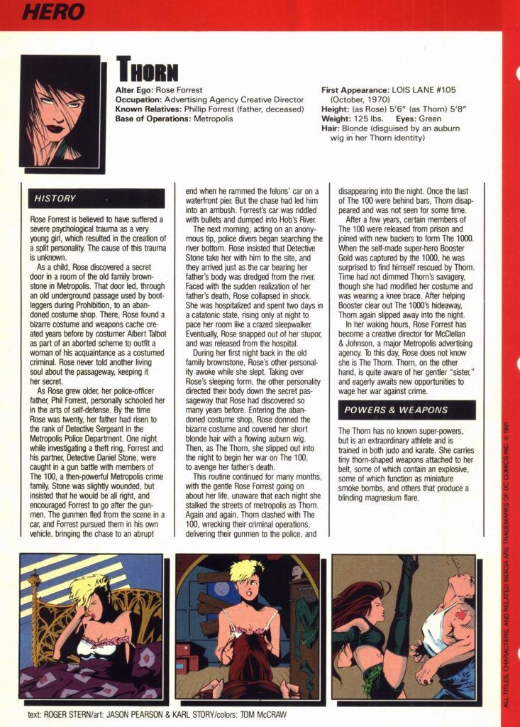 Outdated looks edition! Featuring Thorn in her old, more revealing costume, the Parasite when he was still green and orange, and Lex Luthor when he was still fat and bald. As you all know, Luthor doesn't look like that anymore: now he's a skeleton inside a coffin, because he's been dead for months. Yes.