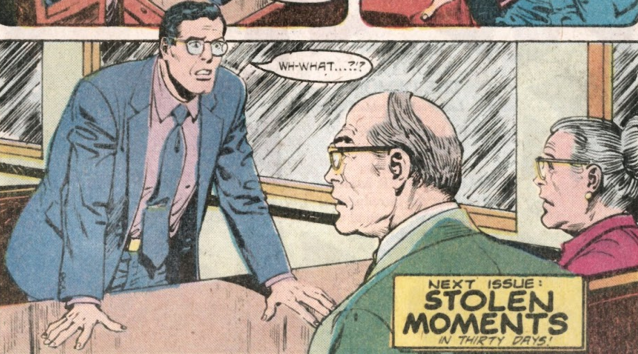 The issue ends with Superman reacting to that revelation in the swinging '80s.