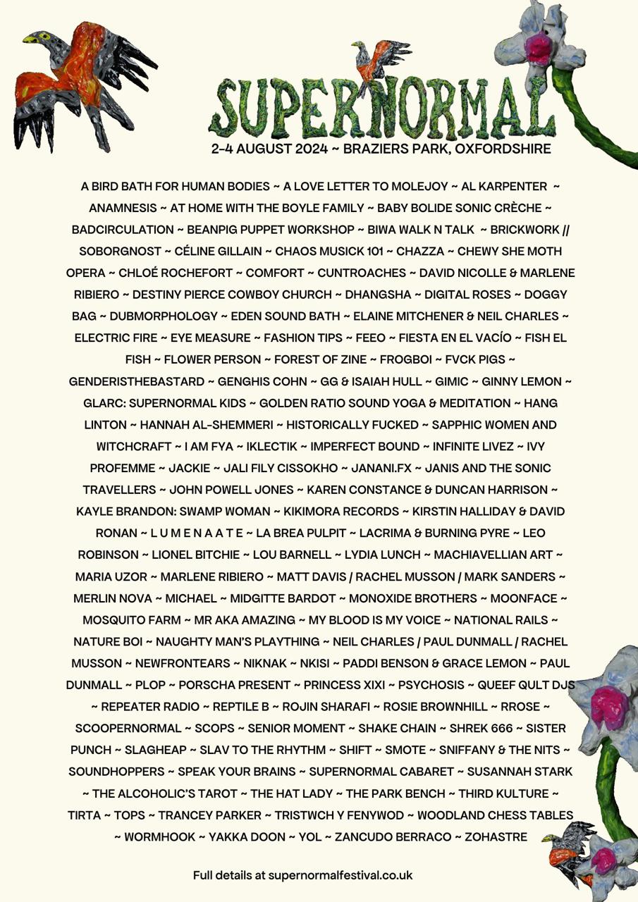 Firstly, there is PHASE 2 of the Supernormal 2024 programme to share, which pretty much doubles the size of what we hit you with first, back in April. Needless to say we are very pleased with it and consider these attractions – musicians, DJs, artists, speakers, workshops etc – to be an essential dispatch from the fringes of culture and creativity as it currently exists. If (m)any of the names on there are simply a mystery to you, get yourself to the ‘Programme’ section of the Supernormal website to read and hear more!