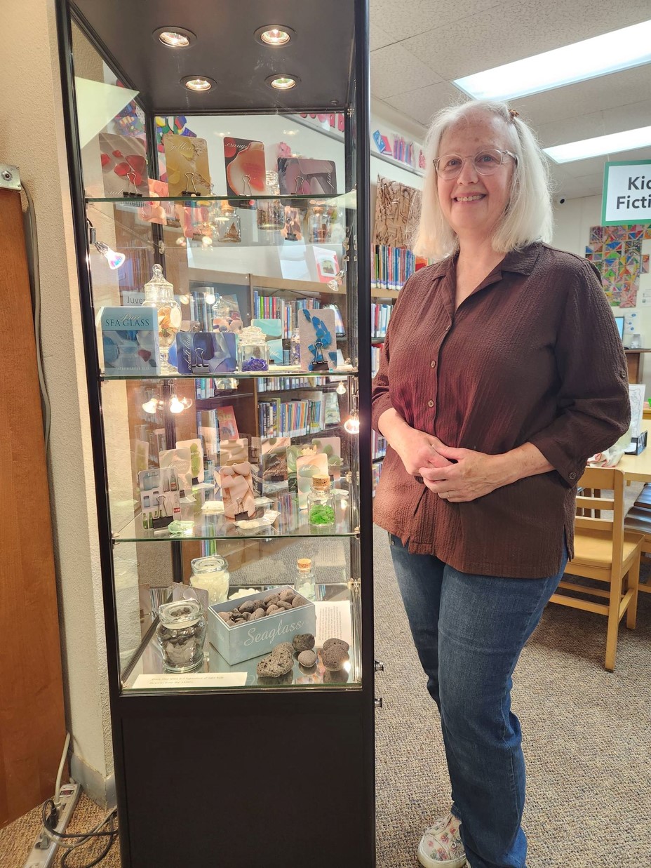 Two new installations to view at the library. The next time you're in check out the beautiful and whimsical art by local artist and children's book author Hannah Tamanini. We also have a beautiful display of colorful sea glass in our display case on loan from Friend of the Library Patty Imes.