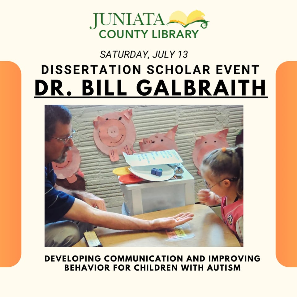 Our next dissertation scholar event is Saturday, July 13 at 2:00 PM. Dr. Bill Galbraith will present on his dissertation, titled “Developing communication and improving behavior for children with autism.”