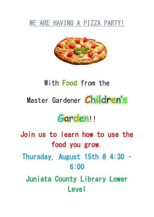 π Penn State Master Gardeners children's pizza party TODAY 08/15 from 4:30 PM to 6:00 PM