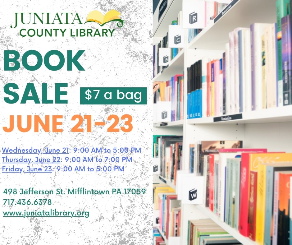 📢 The next Friends of the Juniata County Library book sale will be held Wednesday, June 21, Thursday, June 22 and Friday, June 23, 2023 during regular business hours.