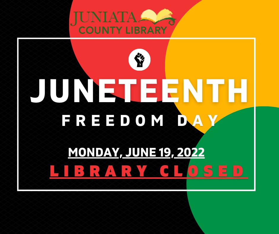 ✊ Monday, June 19th the library will be closed in observance of Juneteenth (Freedom Day.) We will reopen the next day at 9:00 AM