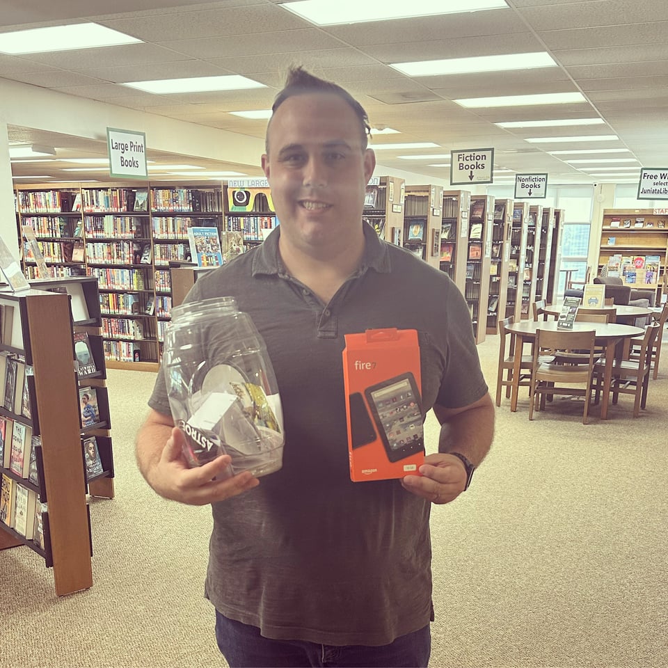 🗓️ Mark your calendars: This Friday, September 8th at 12 noon we will be announcing the adult summer reading winner! The prize is a Kindle Fire!!