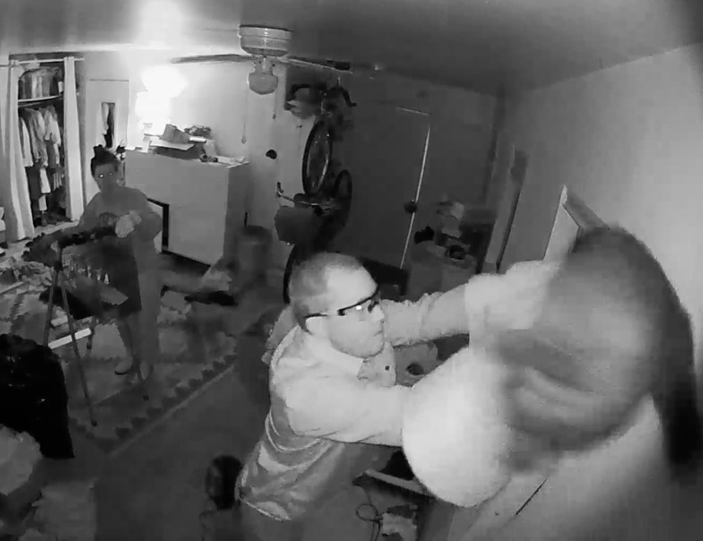 With two people, Clare thought we could manage to get him back in the trap. I donned long sleeves, work gloves and safety glasses. While Clare held the trap, I tried using a blanket to grab him. He slipped my grasp several times, pissing and swatting furiously at me. I had him at several points, gripping his midsection firmly while he bit me through the blanket and gloves. It didn't puncture the leather but I was stunned by the strength of his bite. I added a work jacket to my PPE. Eventually I managed to hold on to him long enough to stuff him into the trap with the piss-soaked blanket, pulling it back out through the cracked door. Clare zip tied the trap closed. Within minutes the TNR volunteer was double parked to pick him up, and we loaded the trap into her jeep. I went inside to have a tequila and do the crossword.