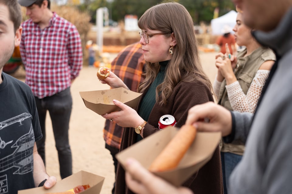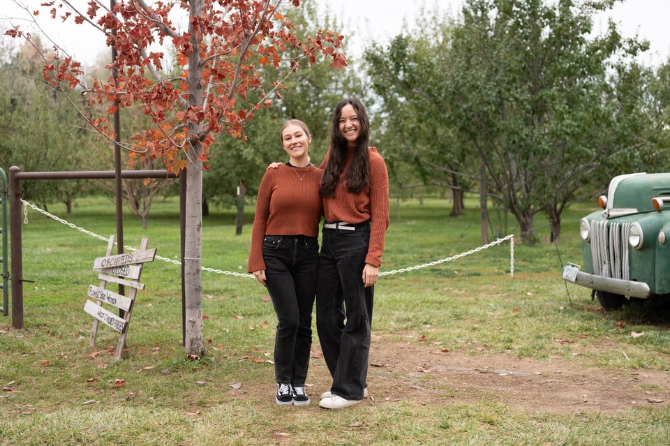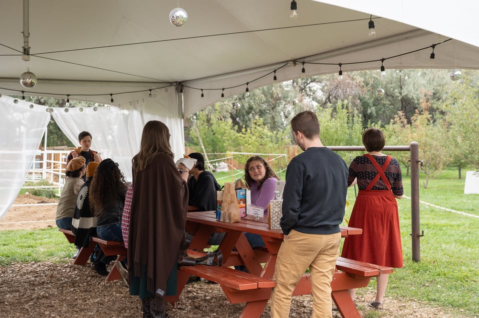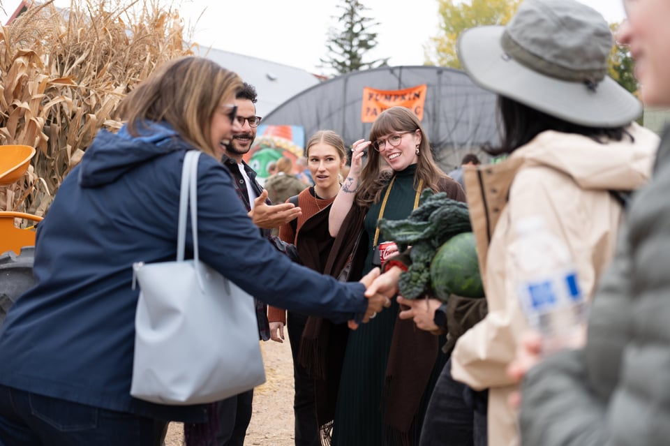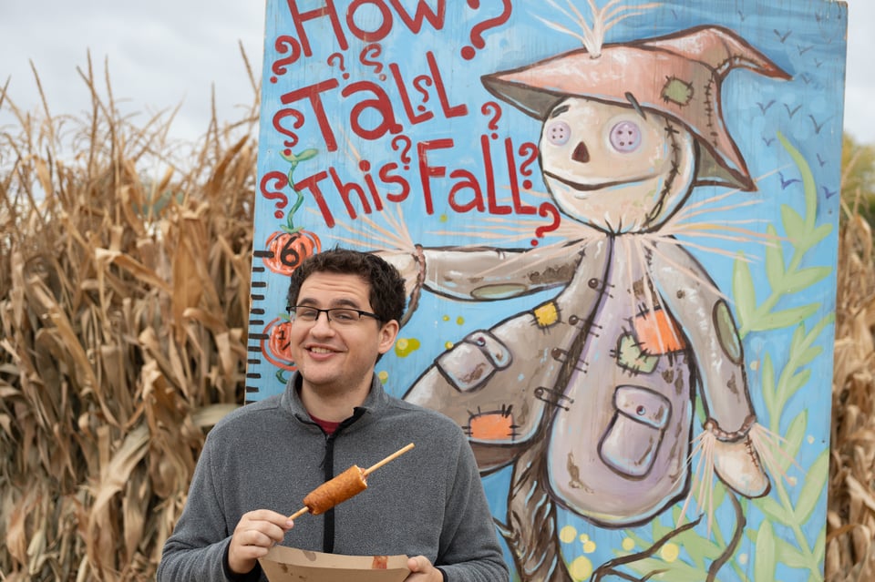 And do you remember The Second Annual Autumn Activity Day? How we sorted into cars, and staggered our arrivals? How we learned from last time and ate fewer donuts this time? That we saw the orange cat with the perfect stripey tail? Rebeca’s stylishly late and stylish appearance? While Sabrina wore a more functional outfit that aided with pumpkin identification? How we looked at flowers and animals, ate corndogs and pretzels, and selected produce? How Mark and his mom appeared near the end? How so much was the same as last year, but the group photos were twice as big?
