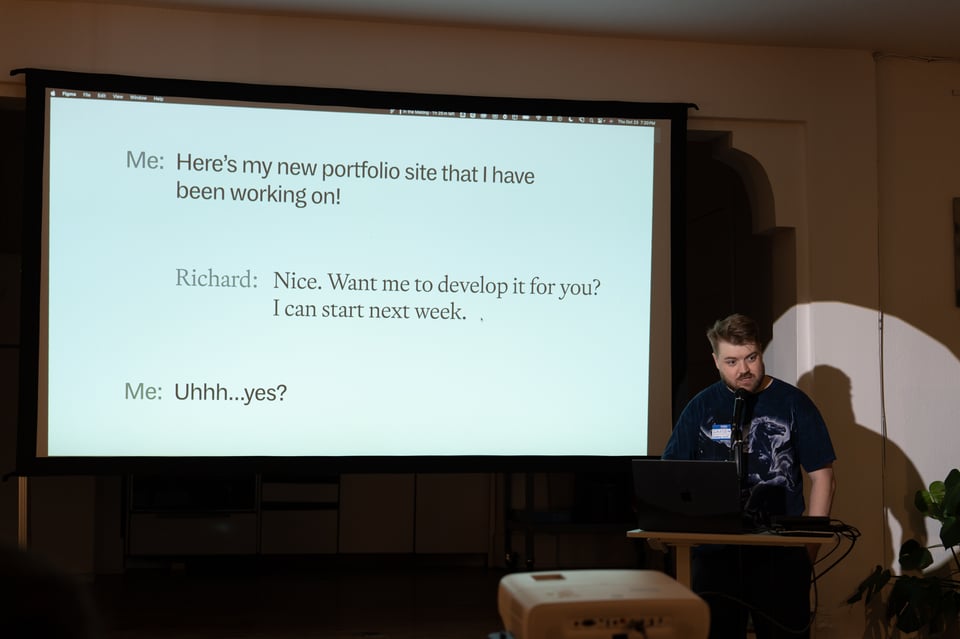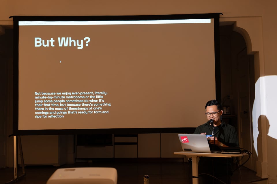 At In The Making: Drew A. shared some new explorations in shadows and negative space, Topher showed us his in-progress personal website, Ivan described a memoir project, Alex demoed Horizon, Jacob took us through the making of a video essay, and Norton talked about the thing to get the thing to make the thing.